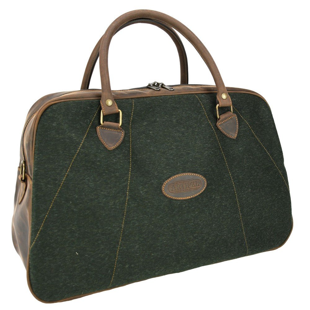 Reisetasche aus Loden und wasserfestem Rindsleder mit Nubuk-Effekt, Innenfutter, Innentasche mit Reißverschluss und Schultergurt aus Stoff