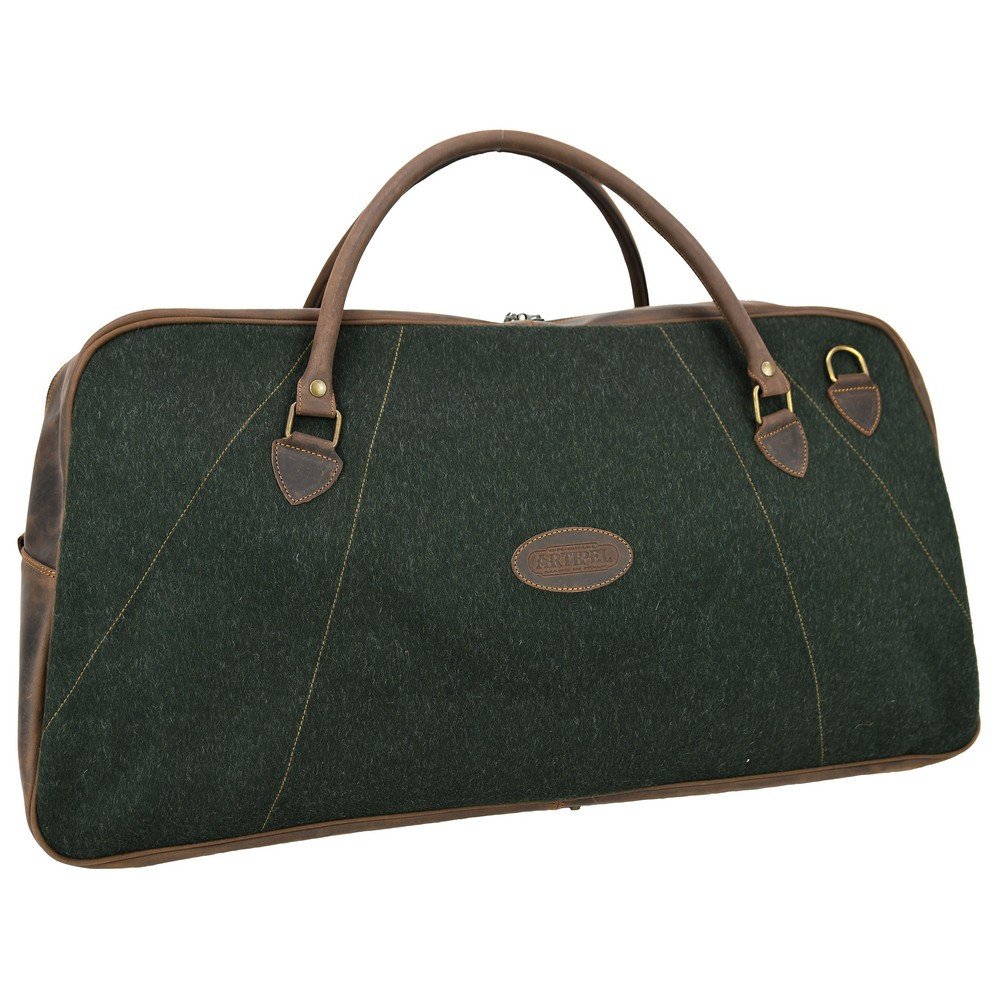 Reisetasche aus Loden und wasserfestem Rindsleder mit Nubuk-Effekt, Innenfutter, Innentasche mit Reißverschluss und Schultergurt aus Stoff