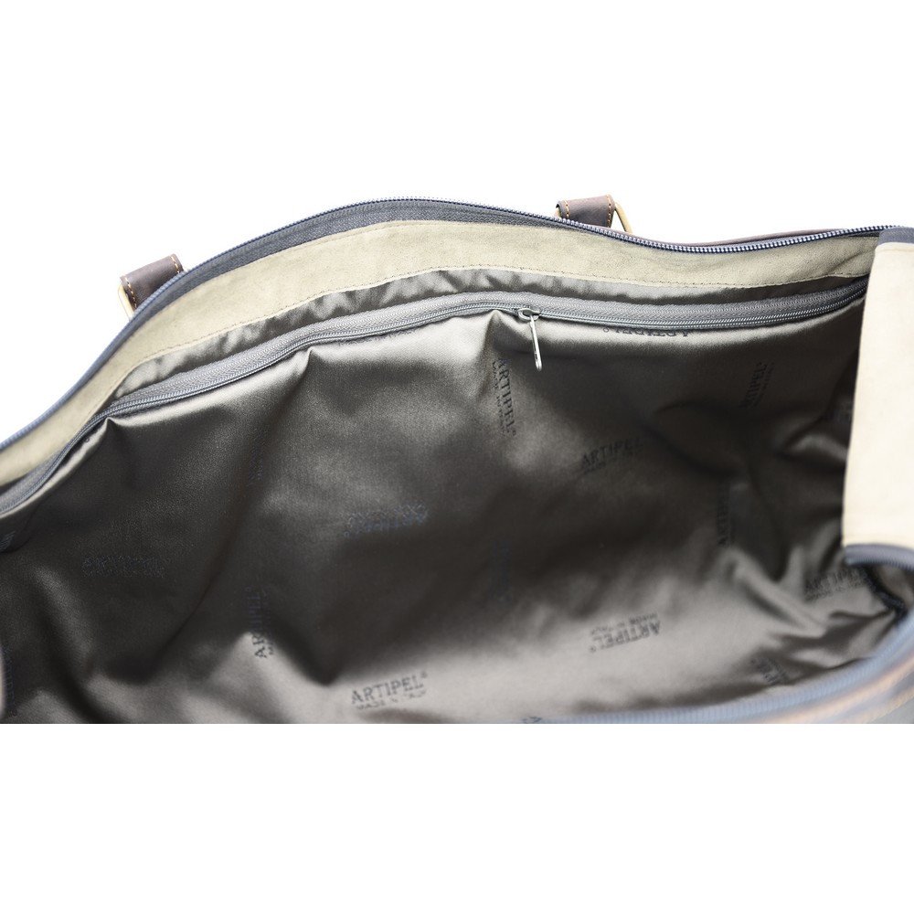 Borsa in Explorer e pelle idrorepellente ingrassata con effetto nabuk, completamente foderata, tasca interna con zip, con tracolla in tessuto e robuste cuciture Misure: 65cm x 25cm x 37cm